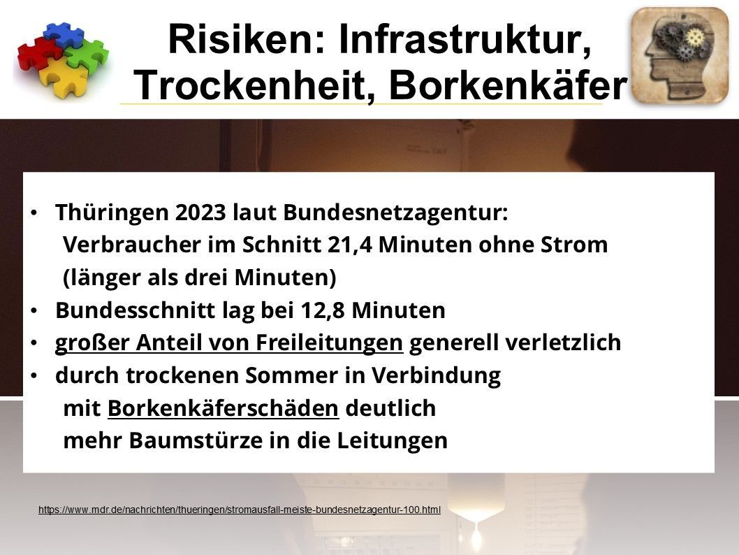 Das waren 2022 und blieben aktuell meine wesentlichen Empfehlungen: Analyse der persönlichen Situation für den Fall eines länger andauernden Stromausfalles und angemessene, moderate Vorsorge. Was aber hat sich in dem einen Jahr zwischen den Vorträgen geändert? Auf jeden Fall das Interesse am Thema. Waren es letztes Jahr rund 50 Interessierte im Bürgerhaus, so waren es dieses Mal genau 5 Personen. War im letzten Jahr noch ein Vertreter einer Lokalredaktion persönlich für eine Berichterstattung zugegen, so blieb dieses in diesem Jahr aus.