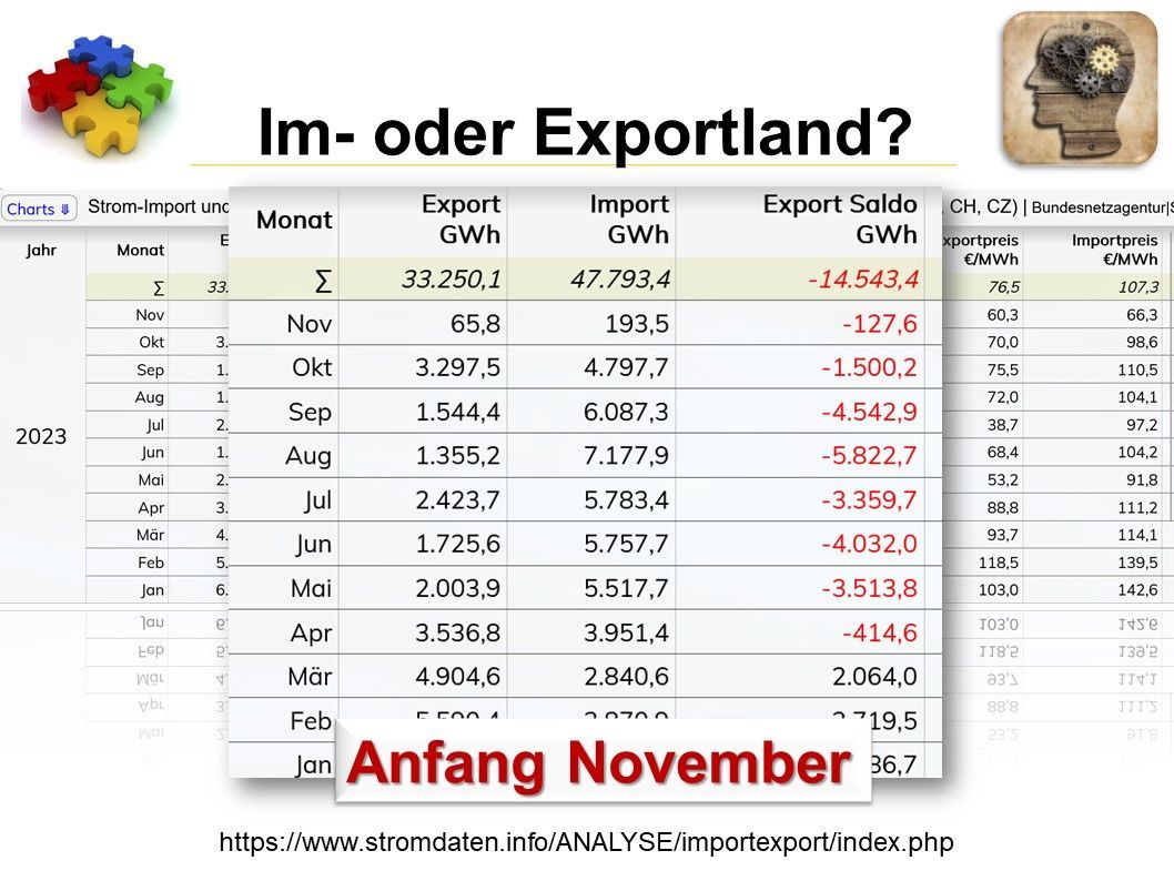 Update zur Versorungssicherheit, Stromversorgung sowie -im-/-exportbilanz.