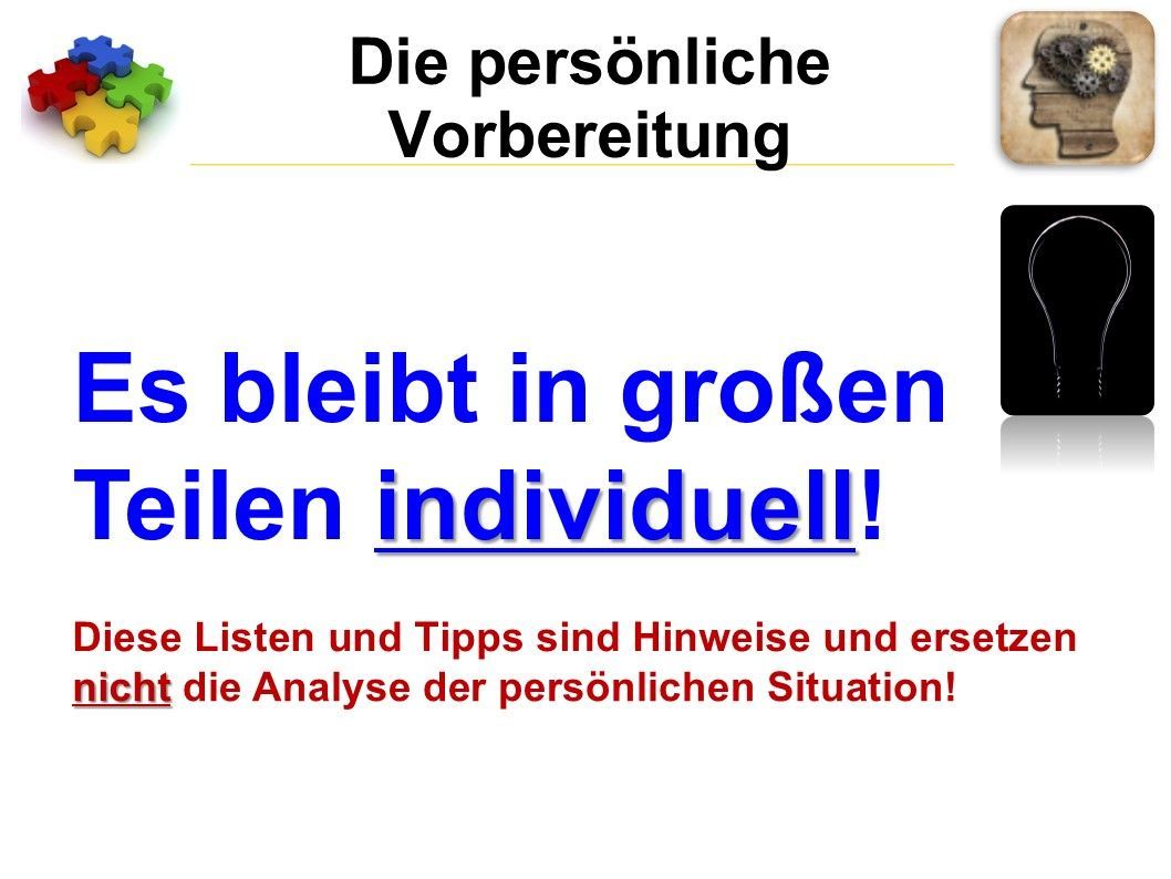 - gedankliche, auch materielle & organisatorische persönliche Vorbereitung